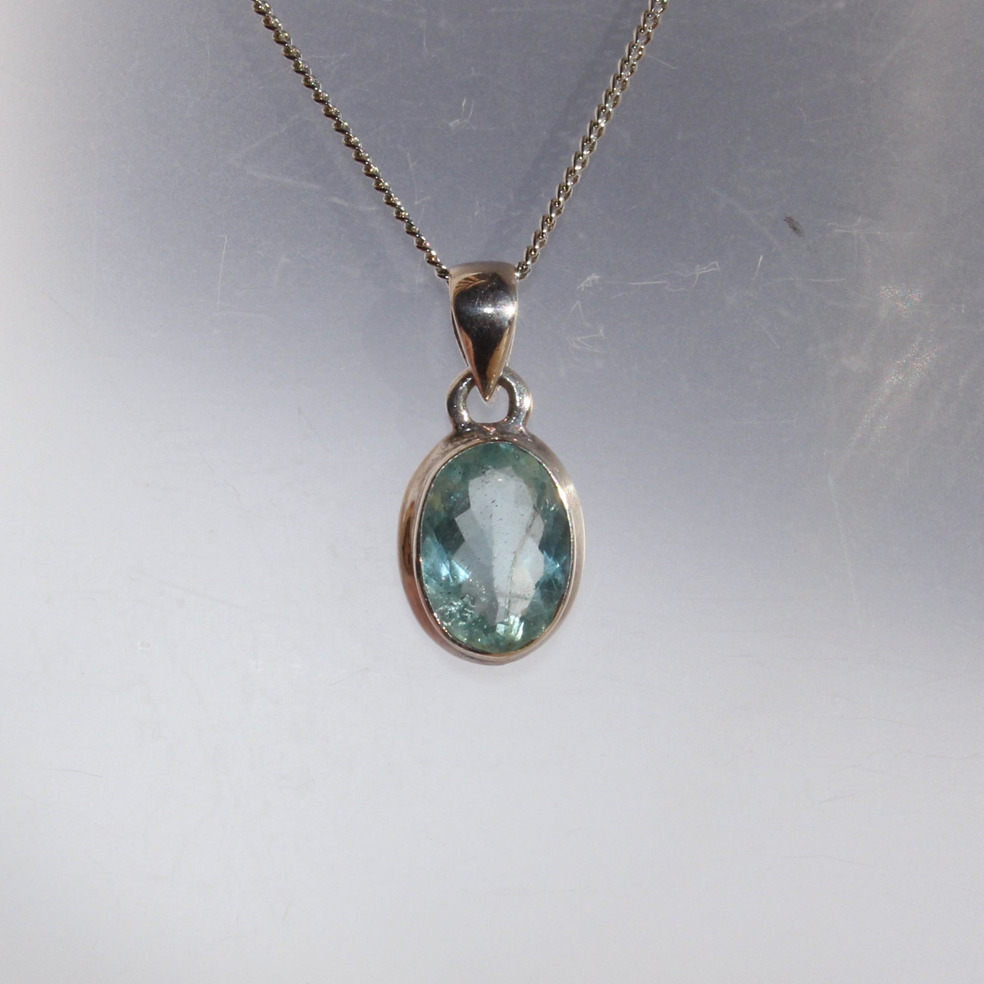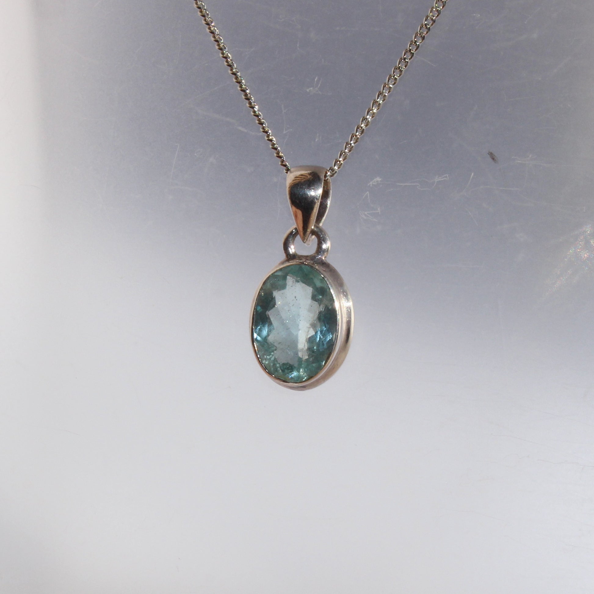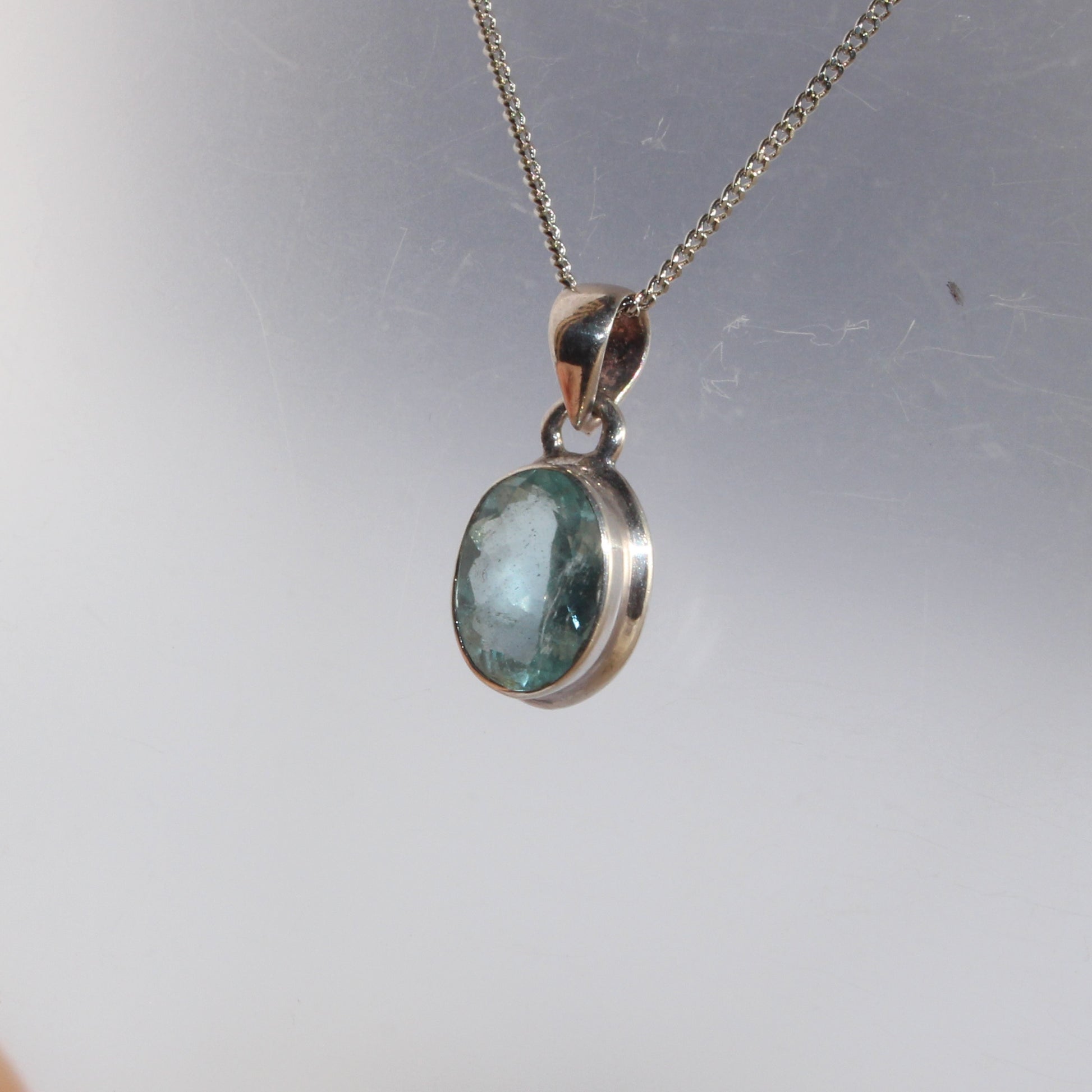 Aqua Marine sterling silver double bezel pendant sterling silver