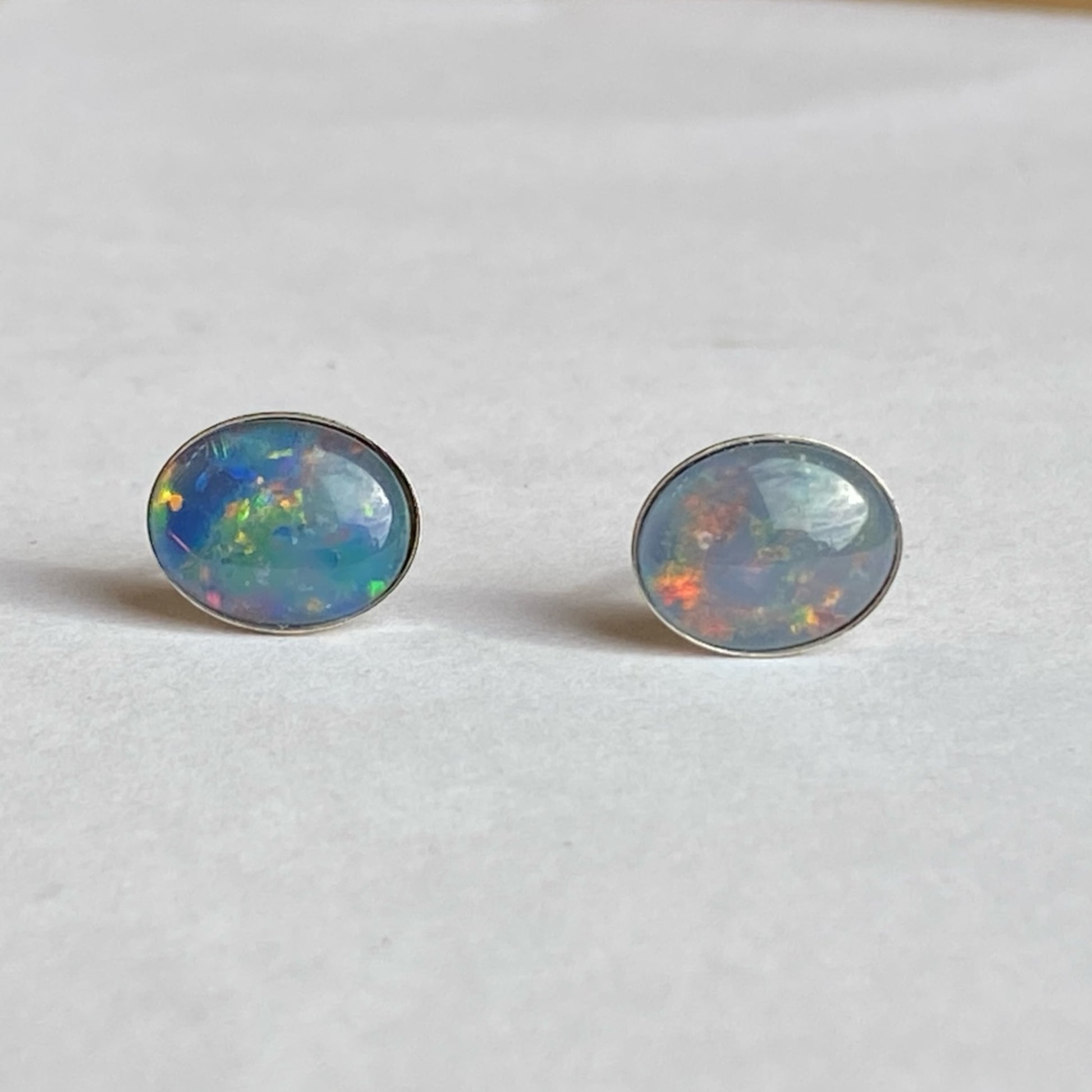 Australian opal 8x10mm sterling silver studs