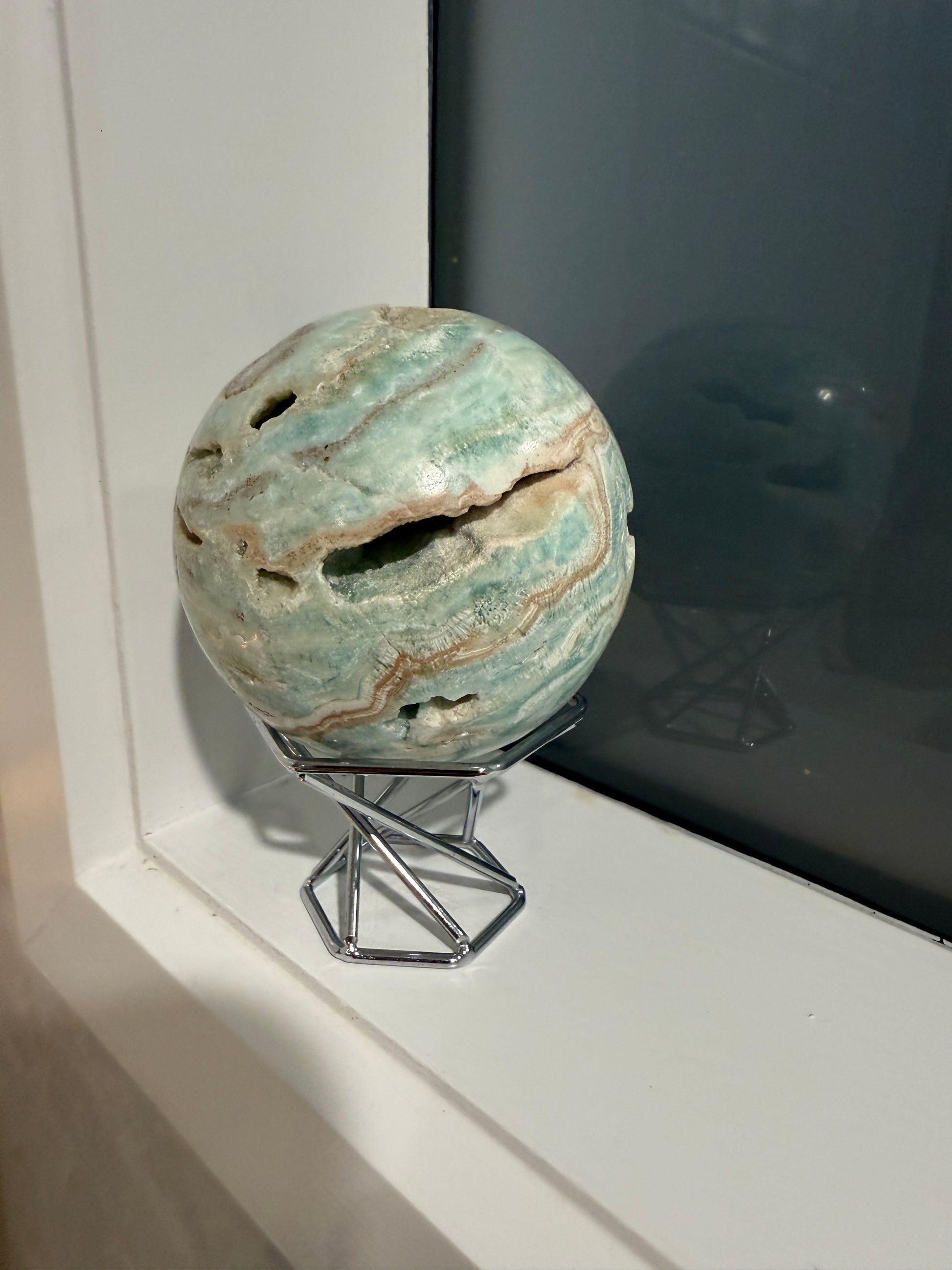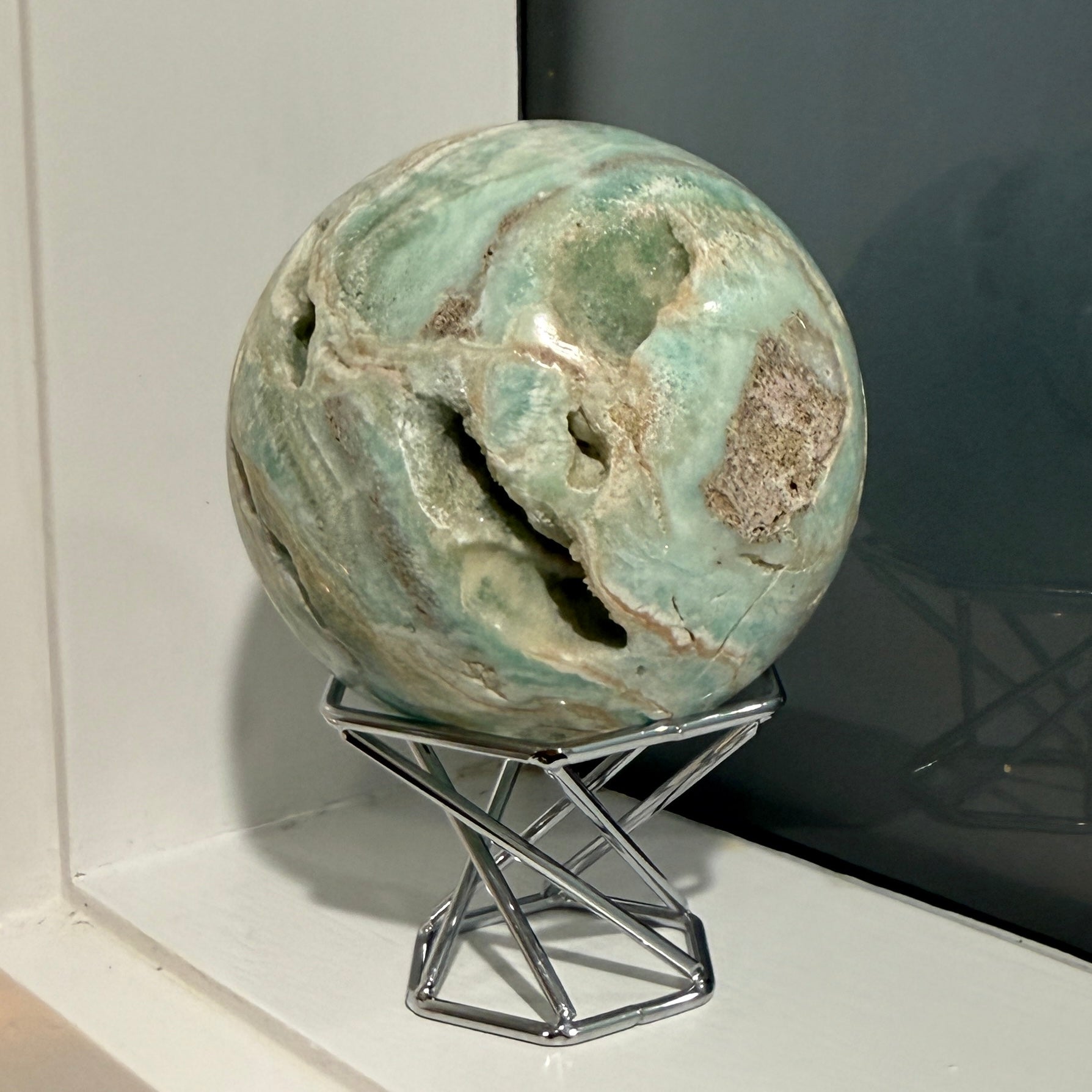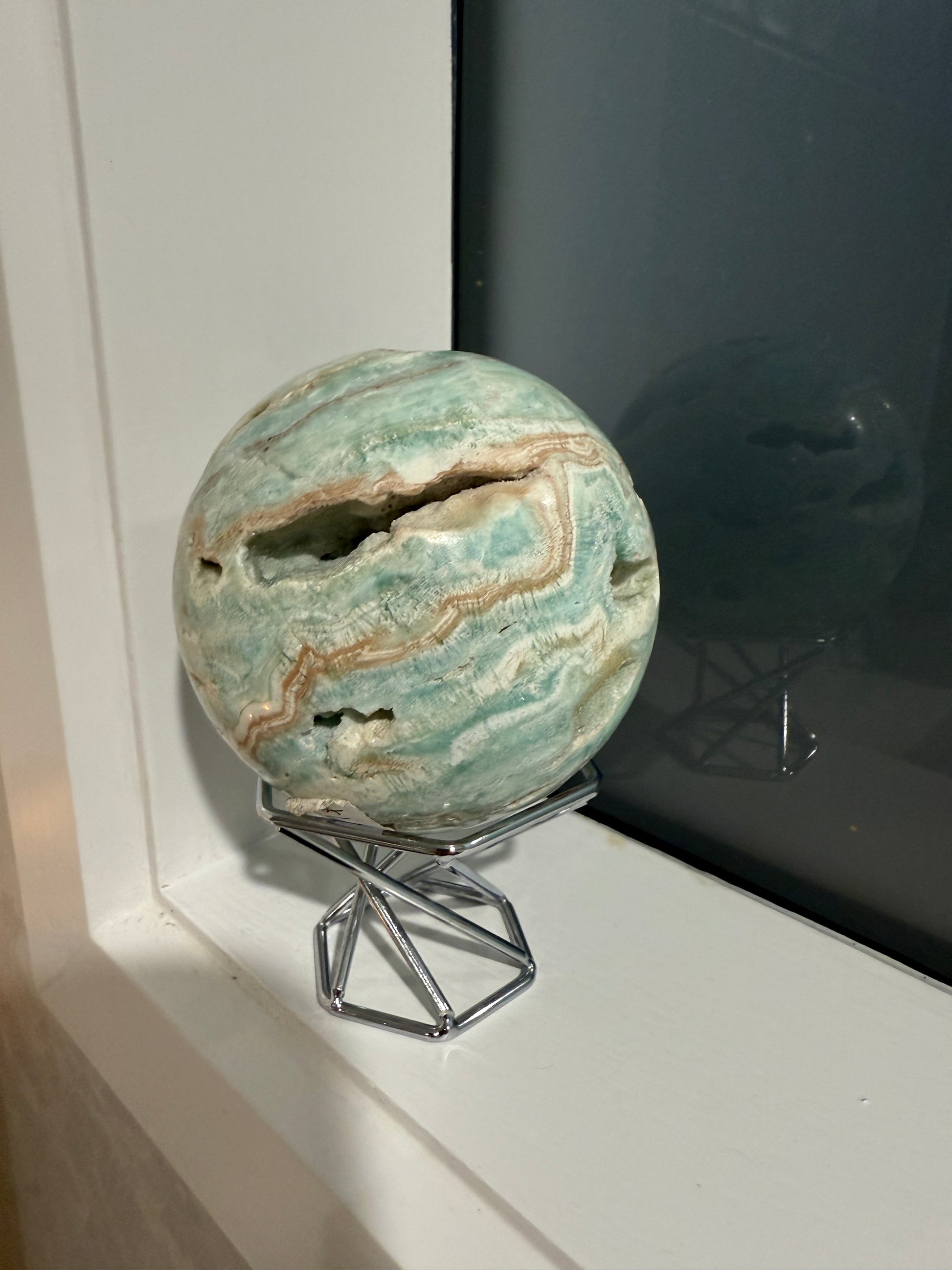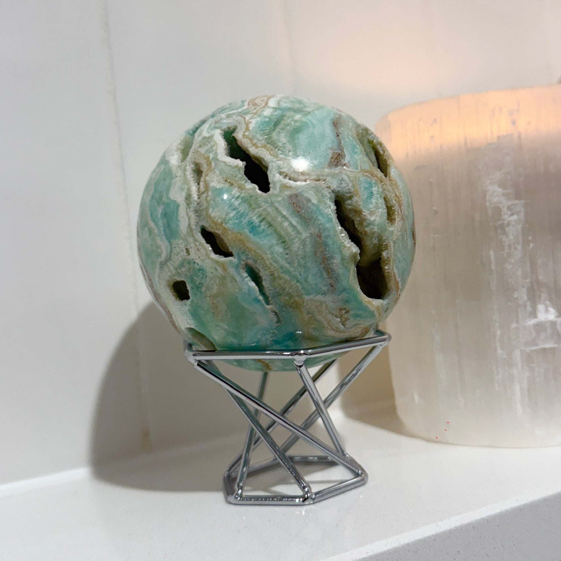Amplify positive energy: The combination of Calcite and Druzy is thought to amplify positive energy, promoting joy, clarity, and emotional balance. - Enhance emotional healing: Calcite's calming properties, combined with Druzy's amplifying energy, may help soothe emotional wounds and promote balance. - Promote mental clarity: The sphere's shape and Calcite's properties may help clarify thoughts, promote mental focus, and enhance decision-making.