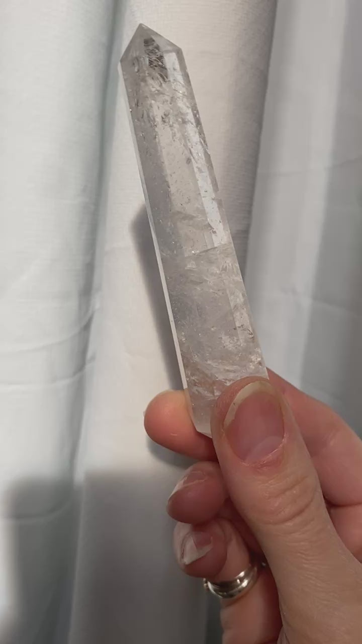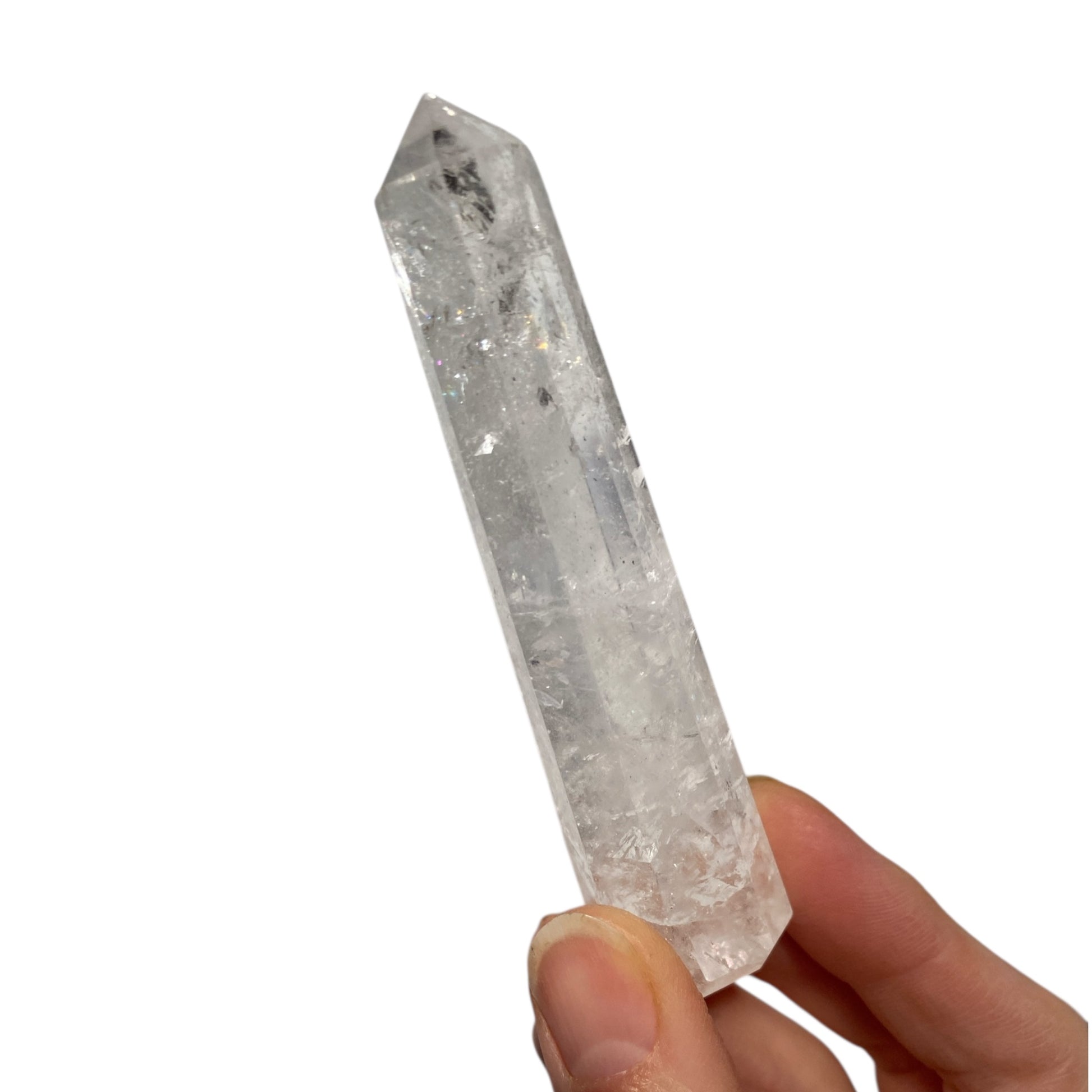Clear Quartz obelisk with rainbow inclusions