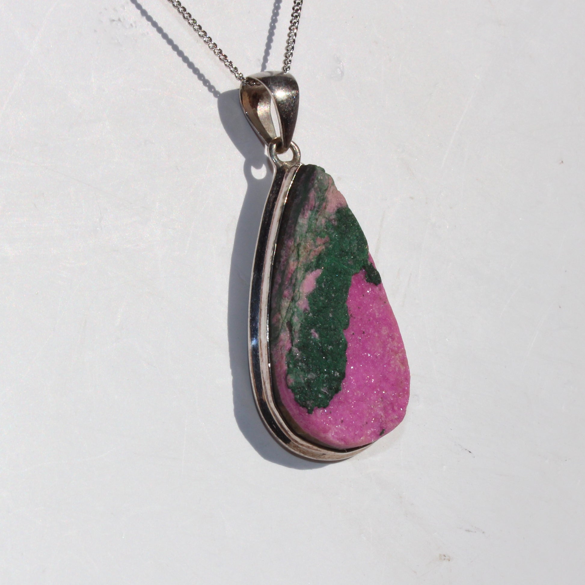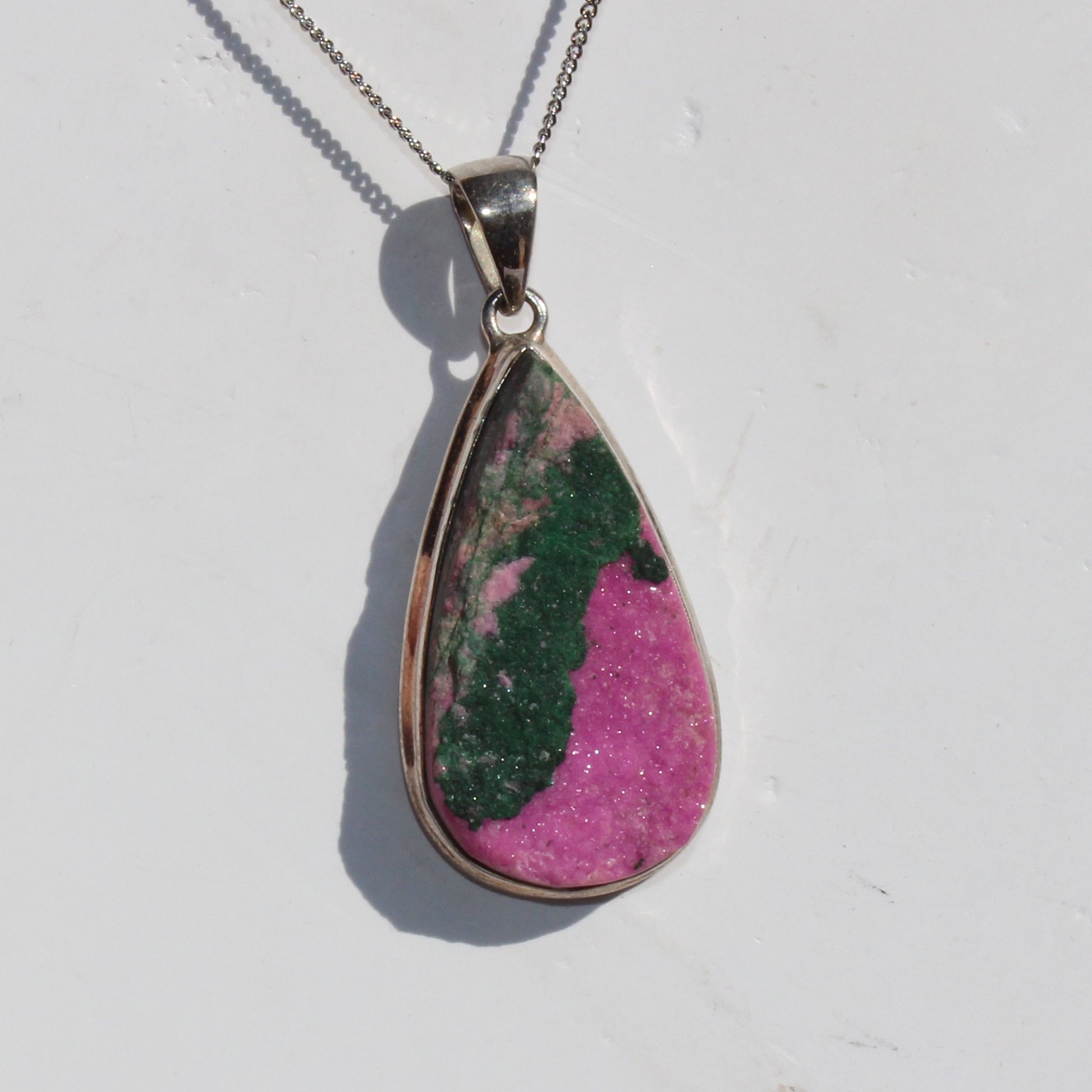 Cobalt Calcite with Malachite sterling silver pendant rare large