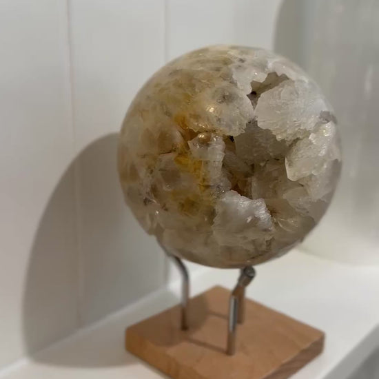 Agate Druzy Sphere featuring Agate with Druzy (small, sparkly quartz crystals) formations on its surface. It's believed to combine the properties of Agate (emotional balance, stability) and Druzy (amplifying positivity, joy). This sphere is thought to be beneficial for: - Emotional healing and balance - Promoting positivity and joy - Enhancing spiritual growth - Creating a calming, peaceful atmosphere People often use Agate Druzy Spheres for meditation, display, or as a decorative piece to bring positive energy into their space.