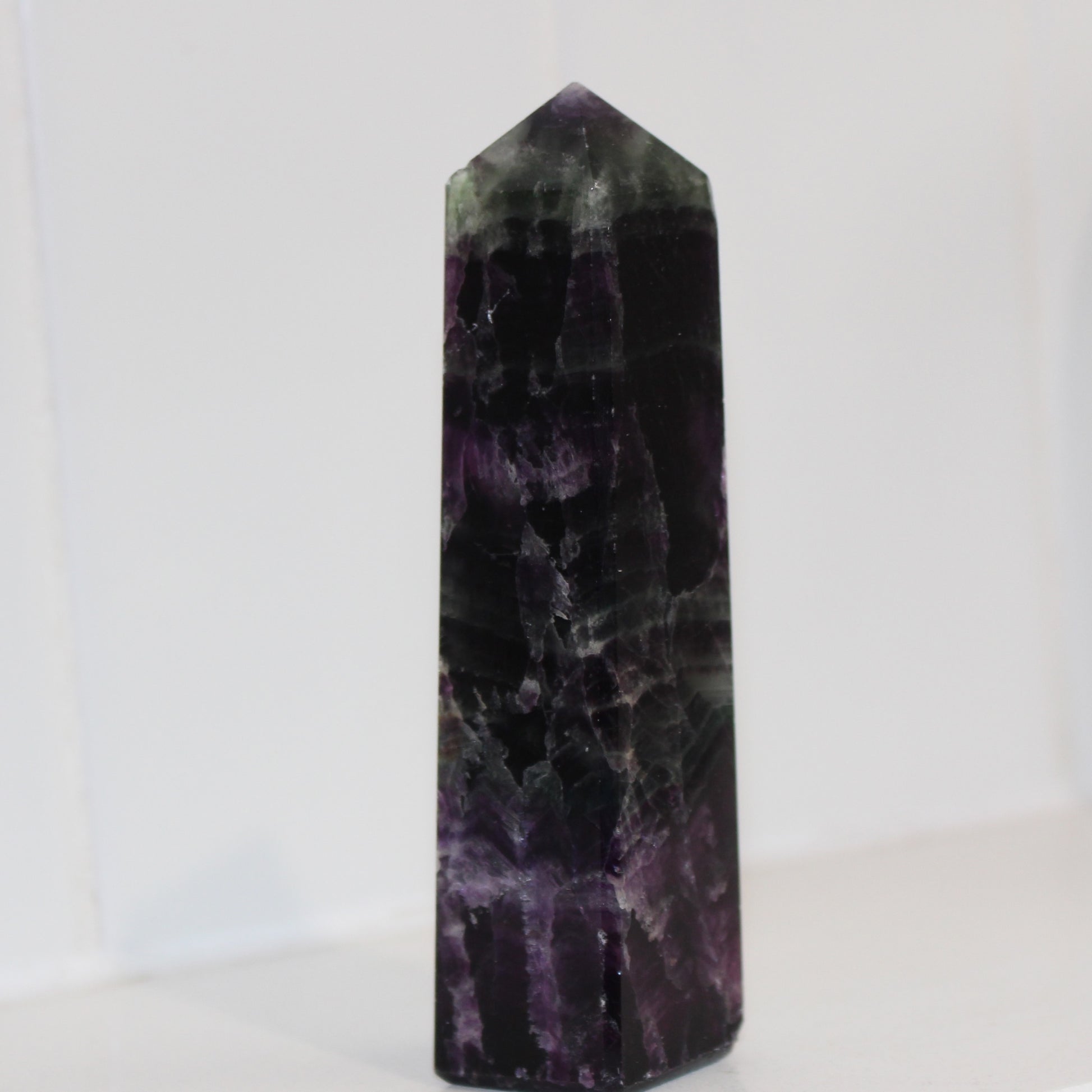 Flourite tower of deep purples and greens