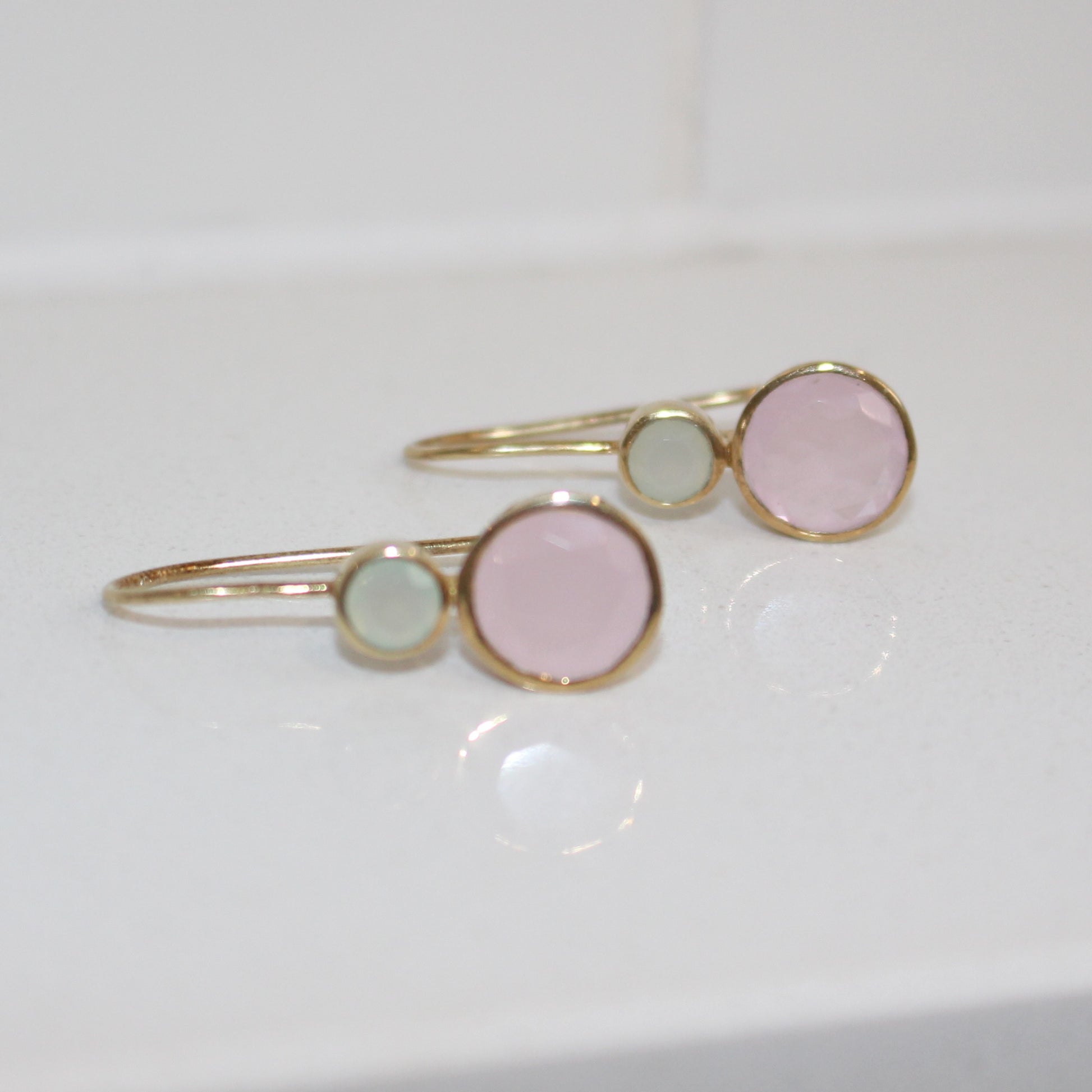 Gold filled Rose Quartz and aqua chalcedony earrings silver
