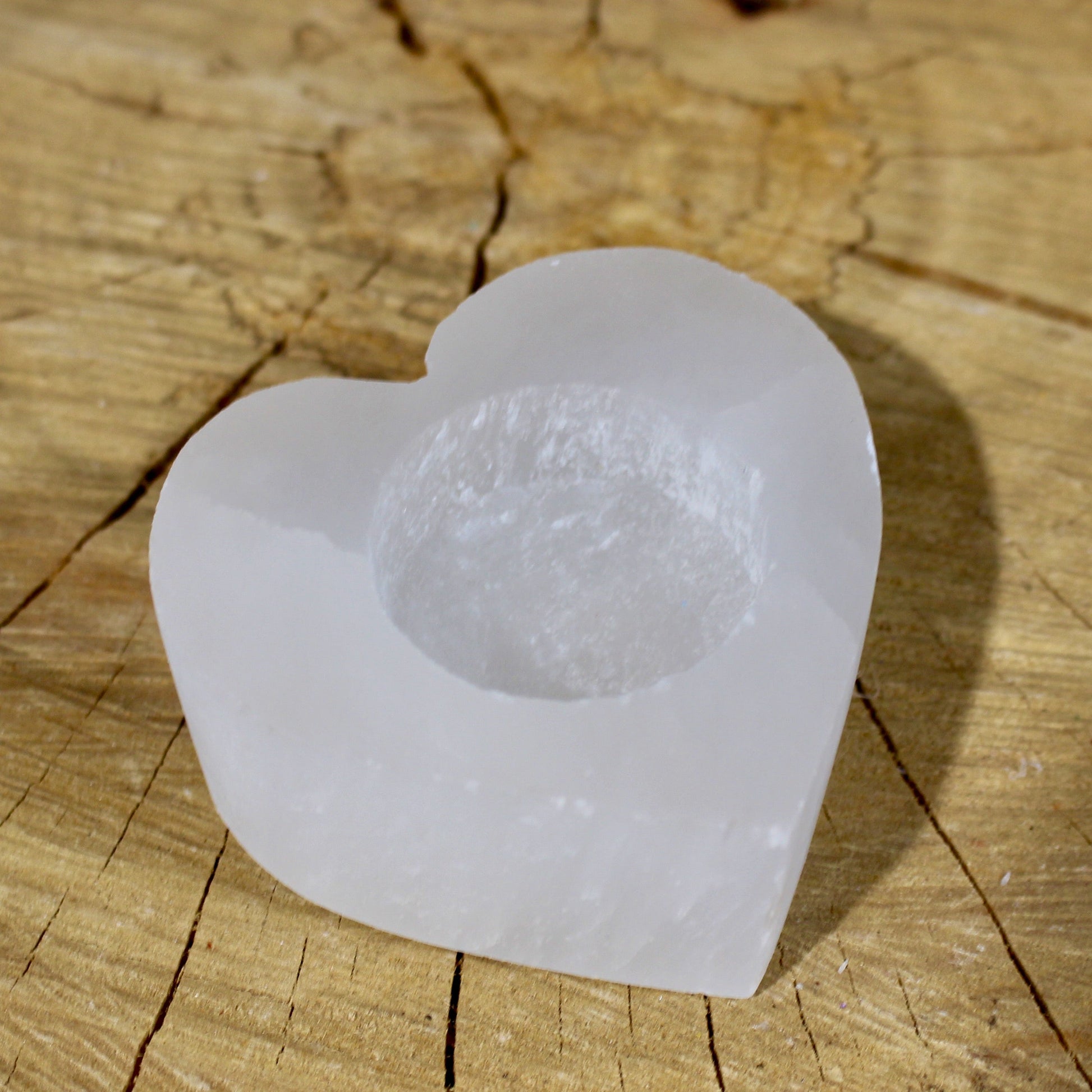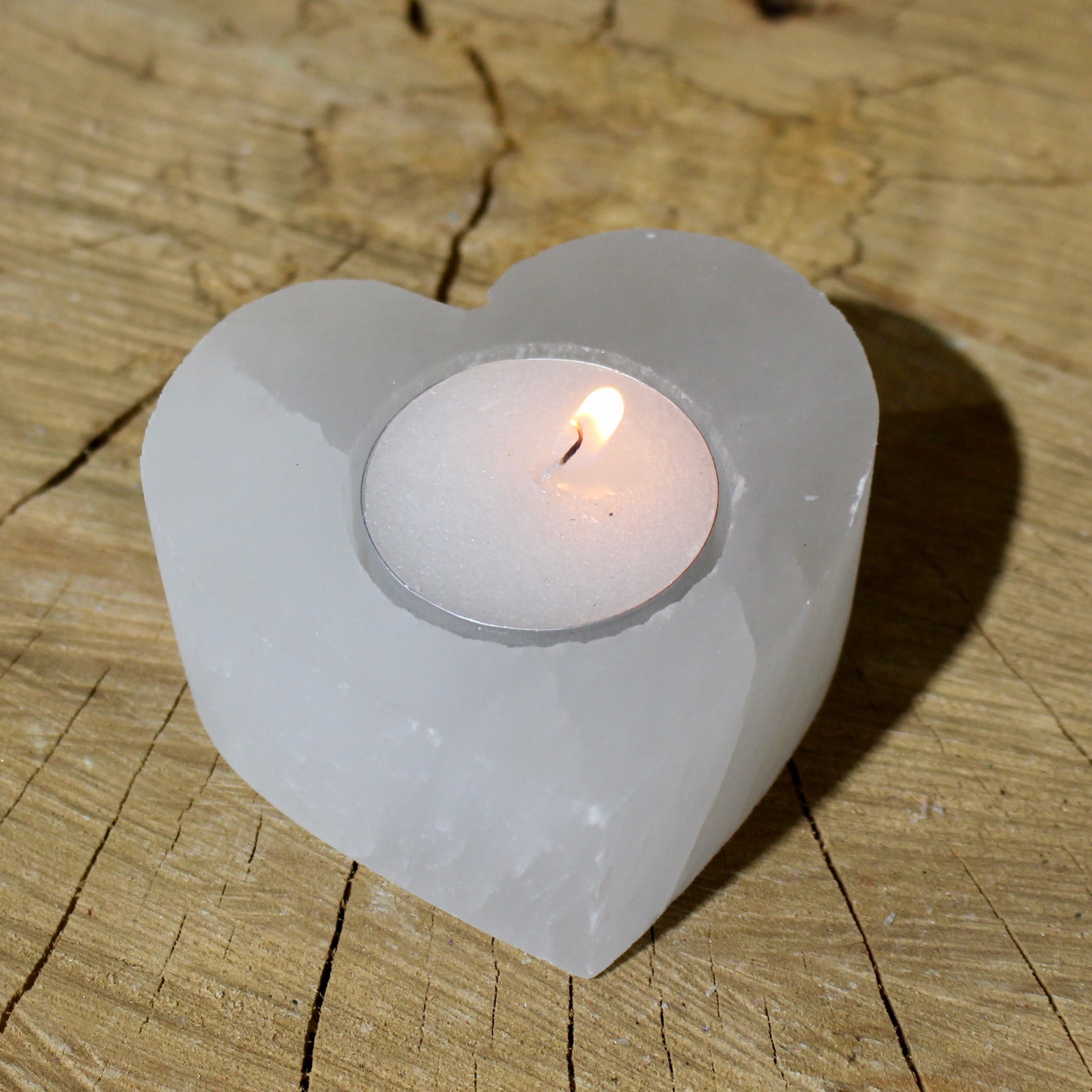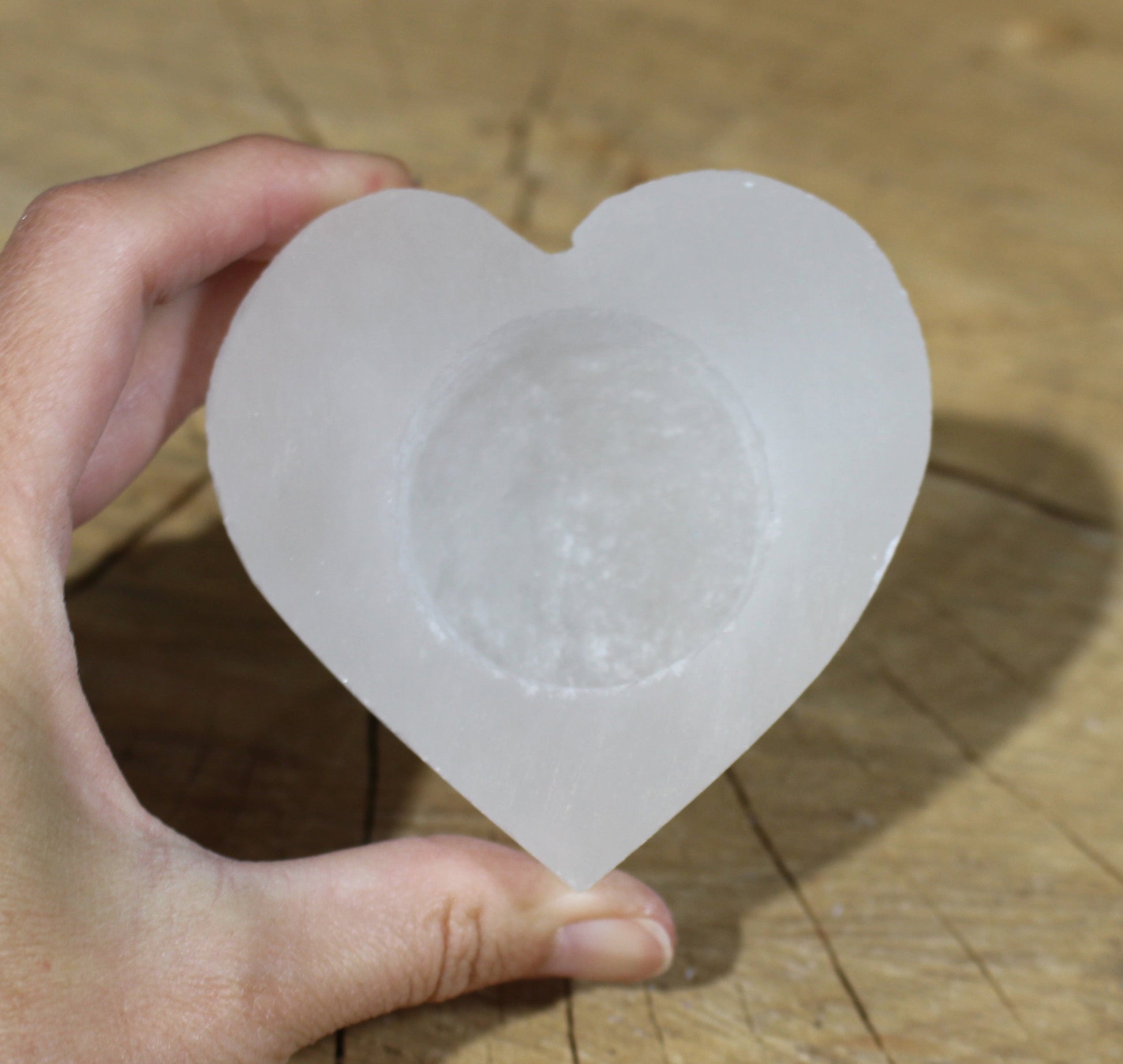 Selenite heart candle holder 80mm x 80mm x 30mm