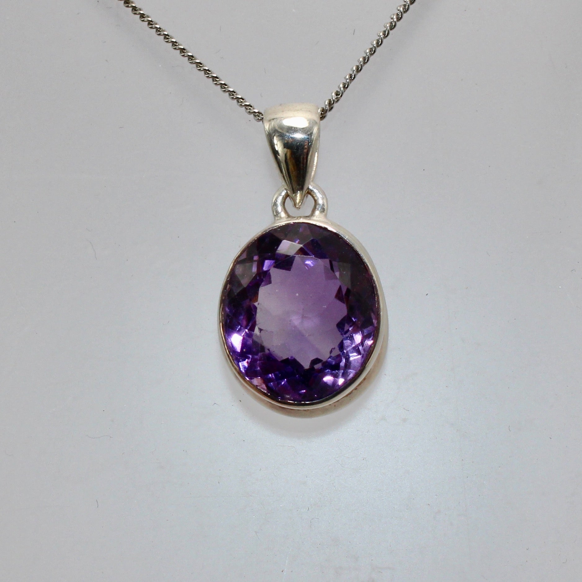 High grade amethyst pendant in sterling silver