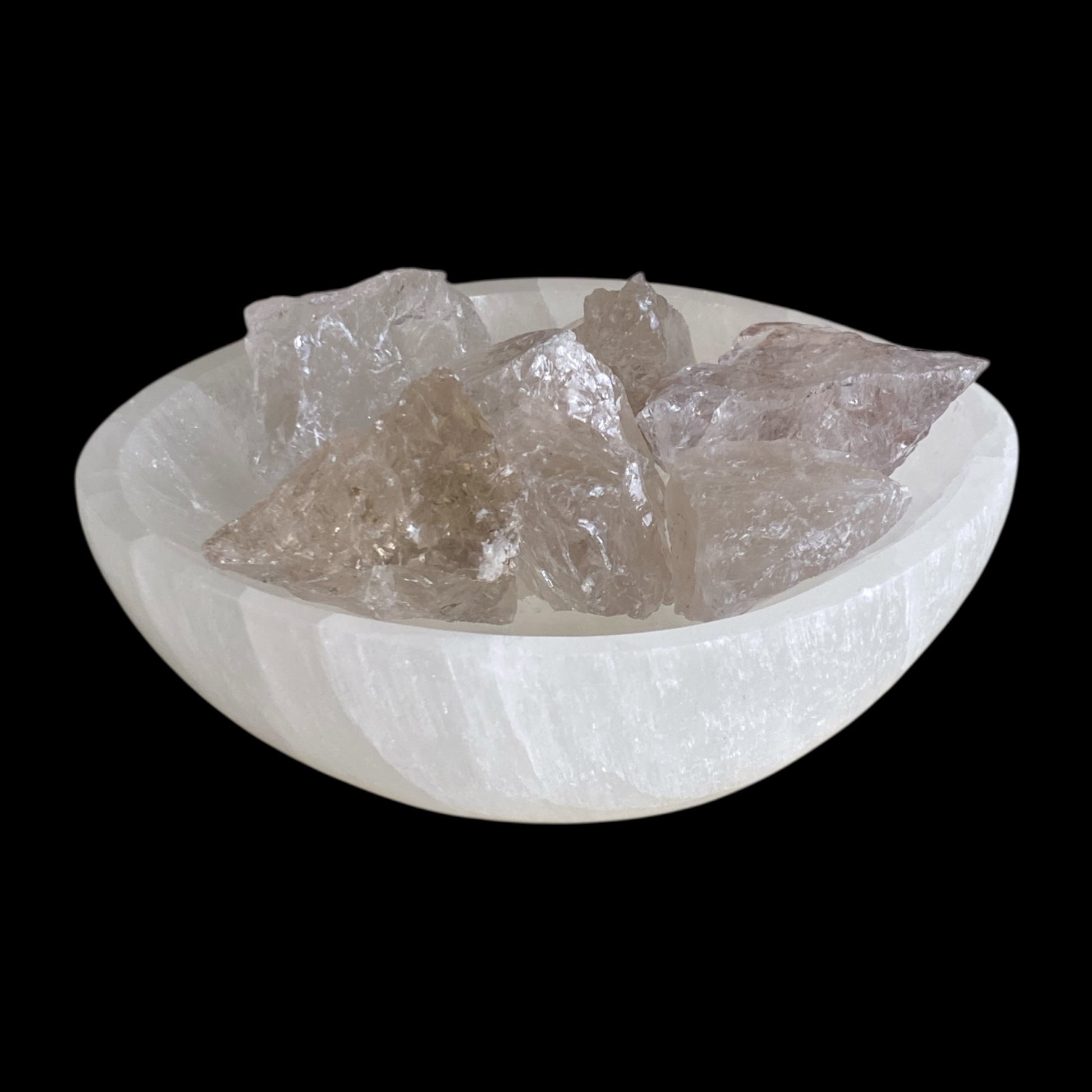 Selenite bowl lamp- Powerful cleansing and purifying properties, mental clarity and connection to higher realms- enhances calmness in any space. light base is wooden USB port and LED light