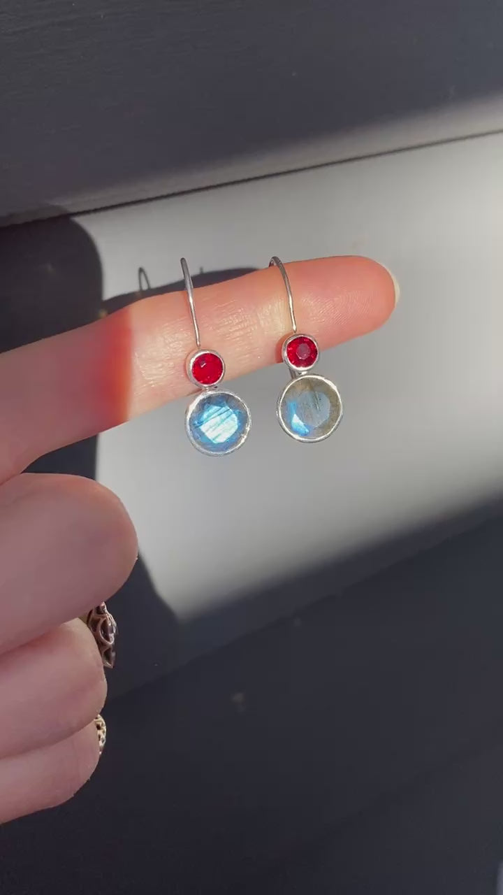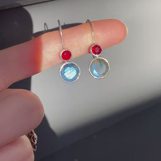 Blue fire labradorite with garnet faceted earrings