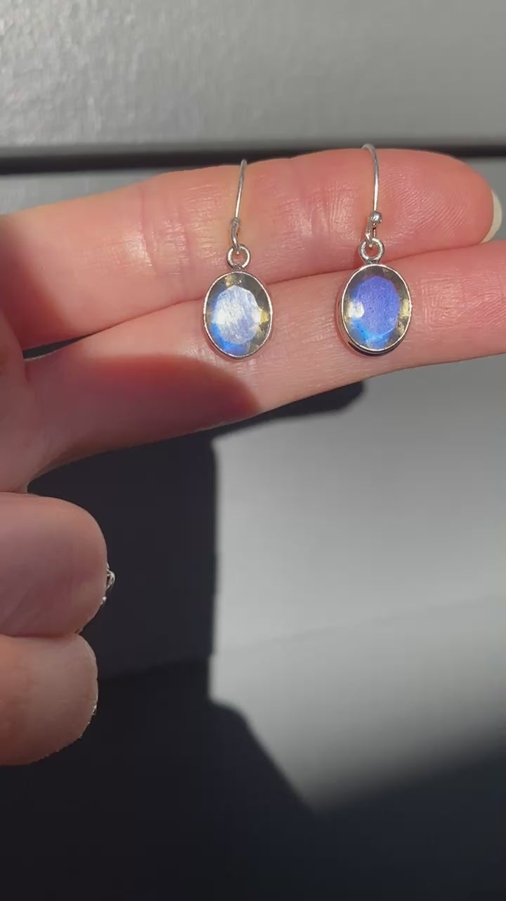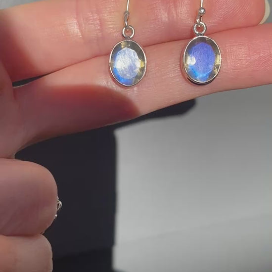 Labradorite sterling silver double bezel faceted earring blue fire
