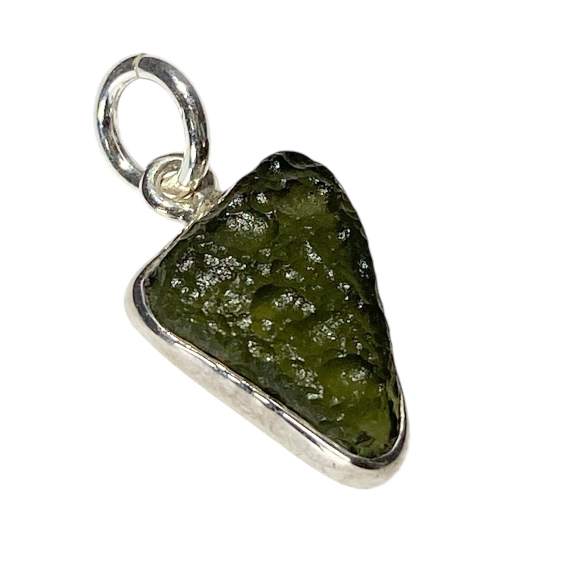 Moldavite is formed after impact from a meteorite creates heat and pressure, the imapct melts the surrounding soil and rock creating a molten glass-like material, the molten glass is then flung into the air where it will cools and solidifies as it falls back to earth.