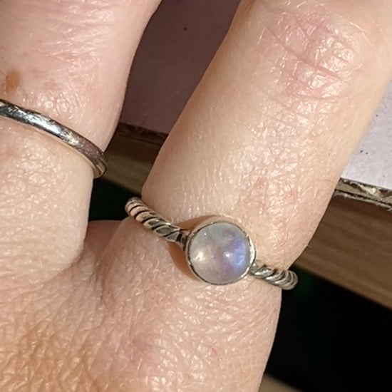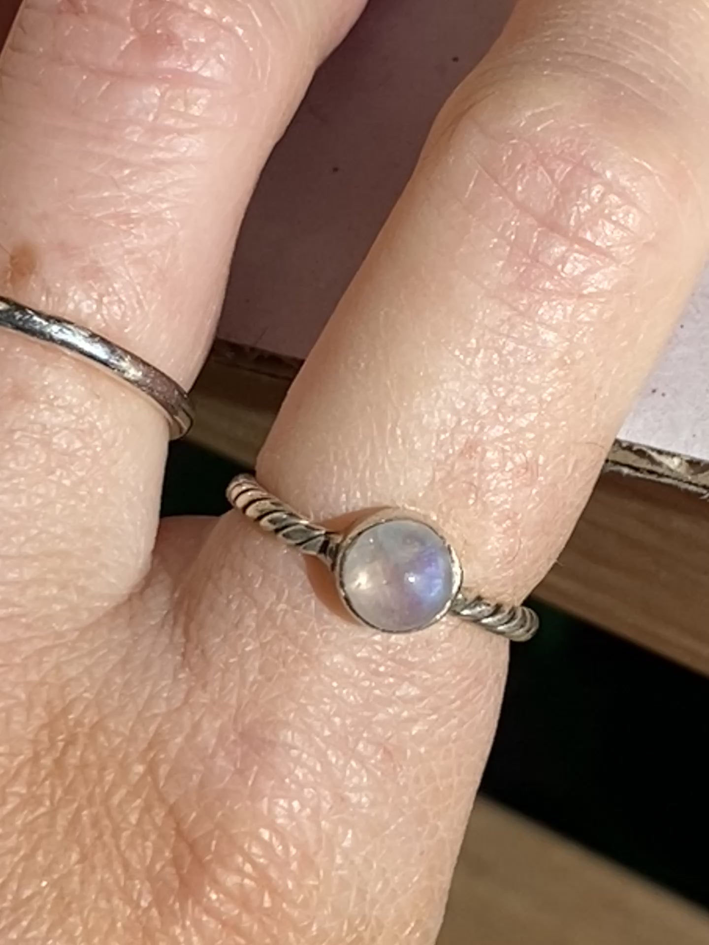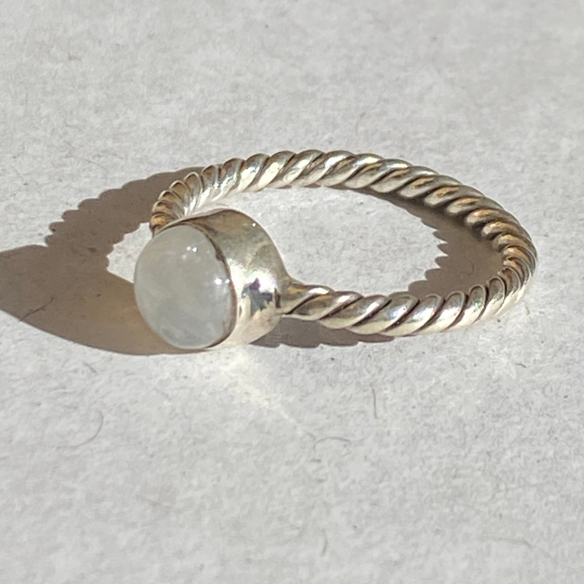 Moonstone 6mm sterling silver twisted band ring size 5.5US