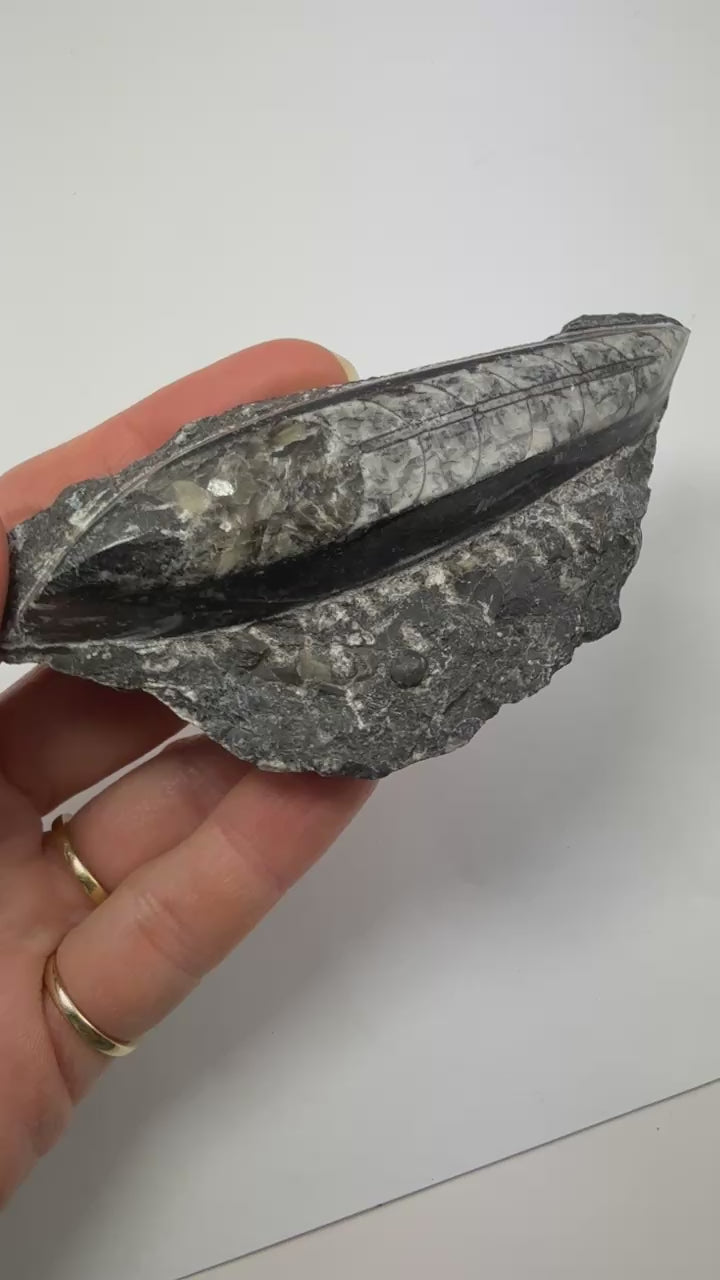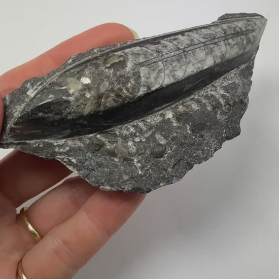 Fossilized Remains: Orthoceras fossils are found in limestone and other sedimentary rocks, often preserving the shell's original structure.