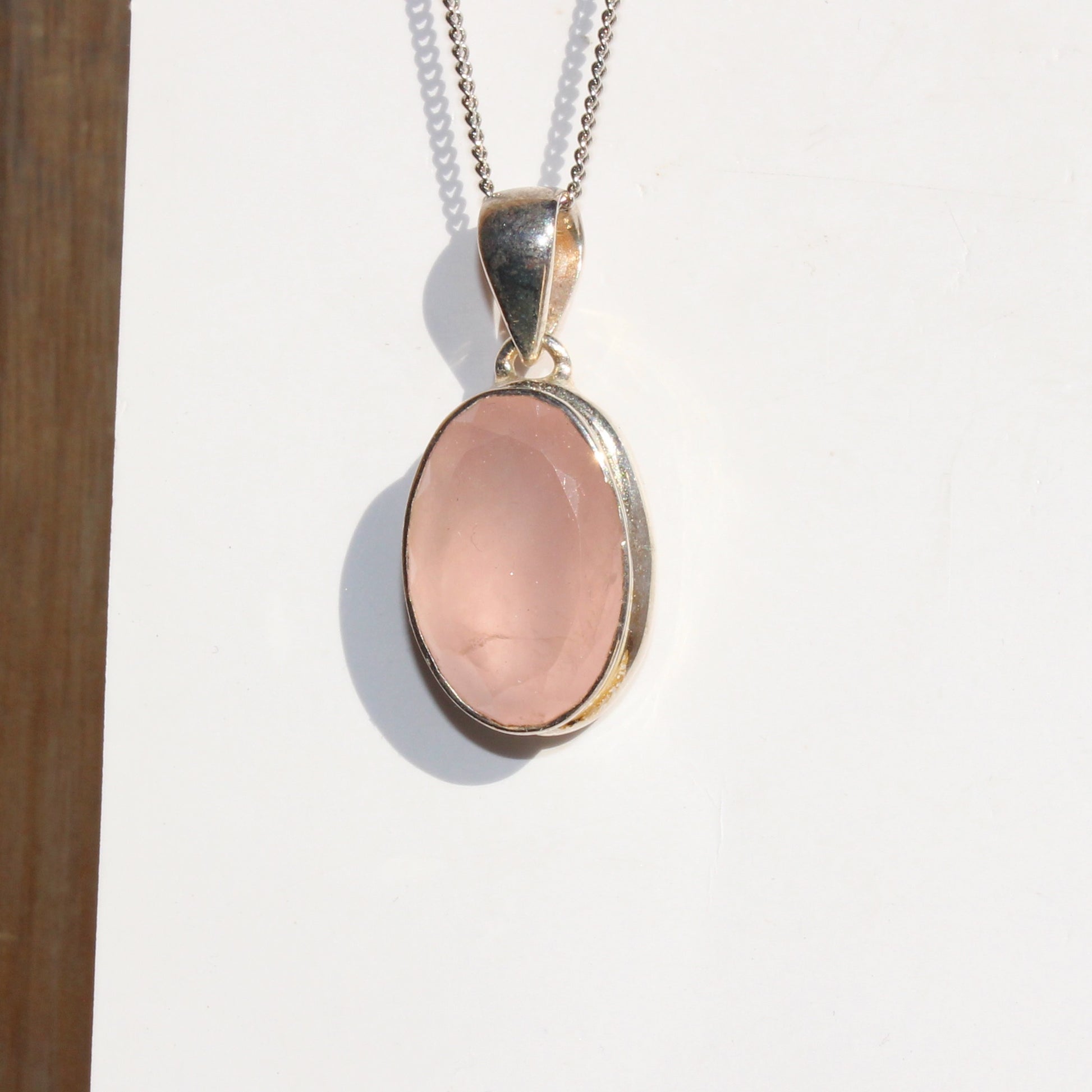 Rose quartz pendant sterling silver oval faceted silver