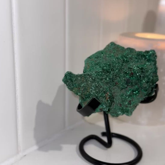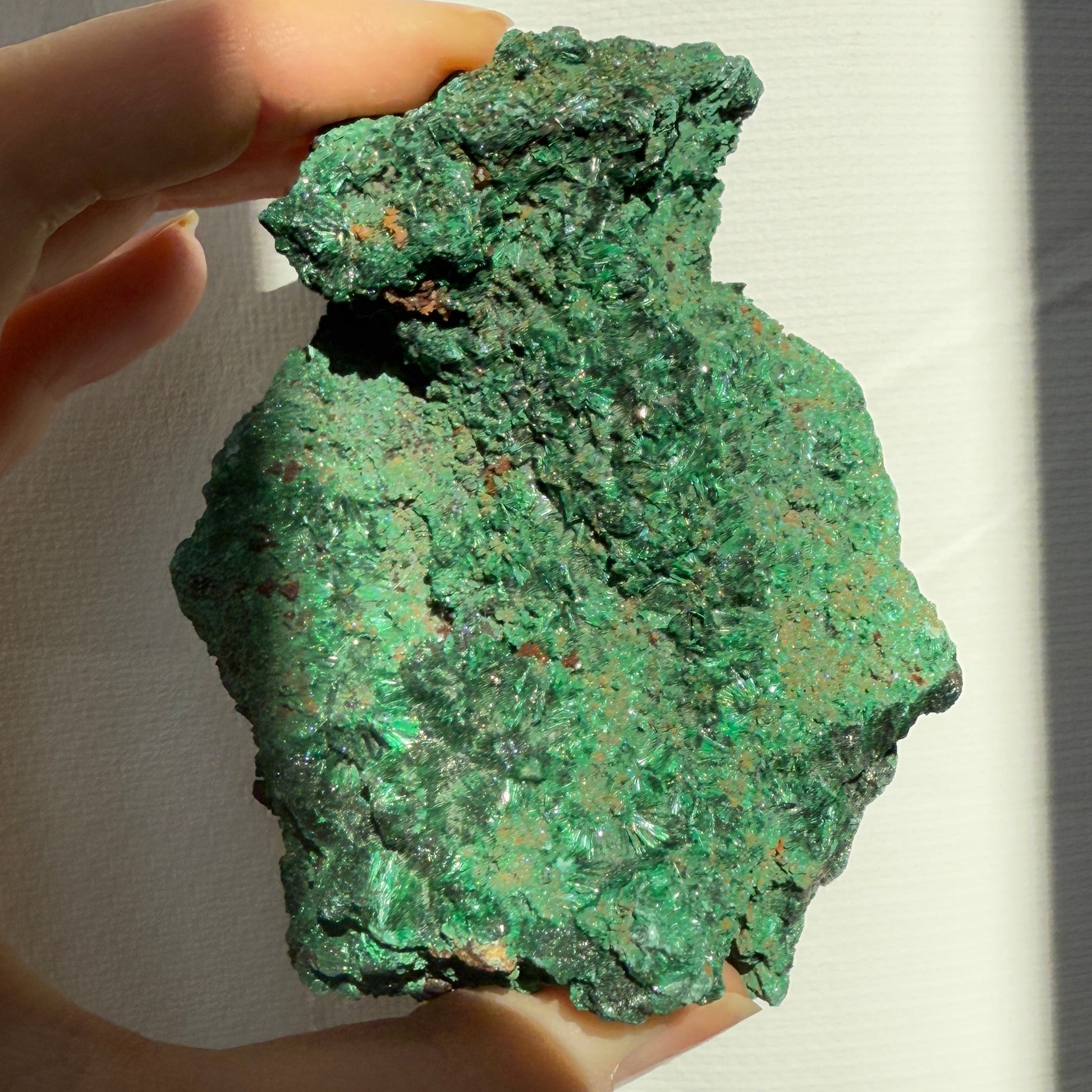 Silky Malachite is a type of Malachite that exhibits a silky or fibrous texture, often with a smooth, velvety appearance. This unique texture is due to the way the Malachite crystals form, creating a soft, fibrous pattern. Silky Malachite is prized for its: - Unique appearance: The silky texture adds a distinctive beauty to the stone. - Rarity: Silky Malachite is less common than other types of Malachite, making it more valuable. - Metaphysical properties: It's believed to possess the same properties as regular Malachite, including protection, emotional healing, and transformation.