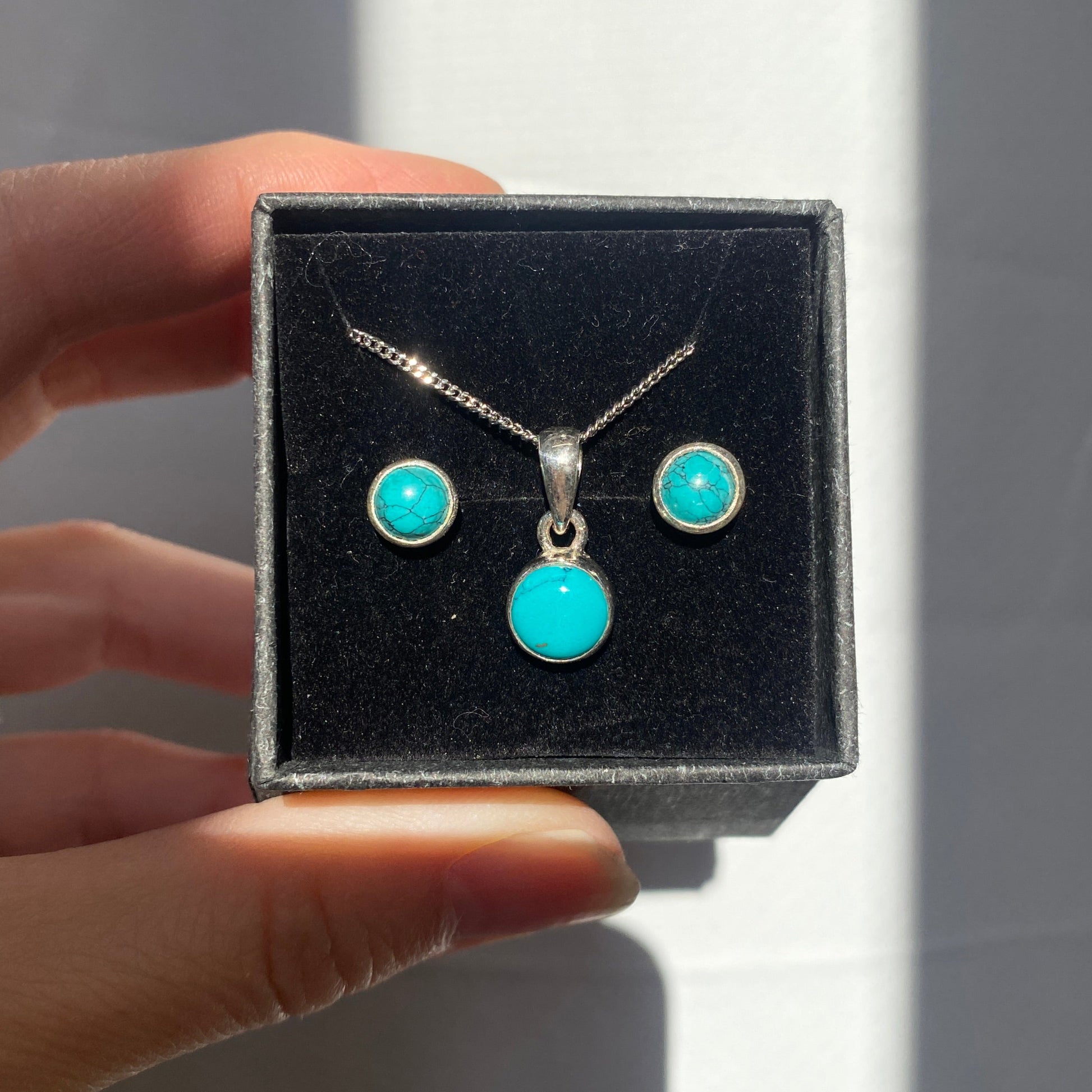 Sterling silver 8mm Turquoise pendant stamped 925, Topsie