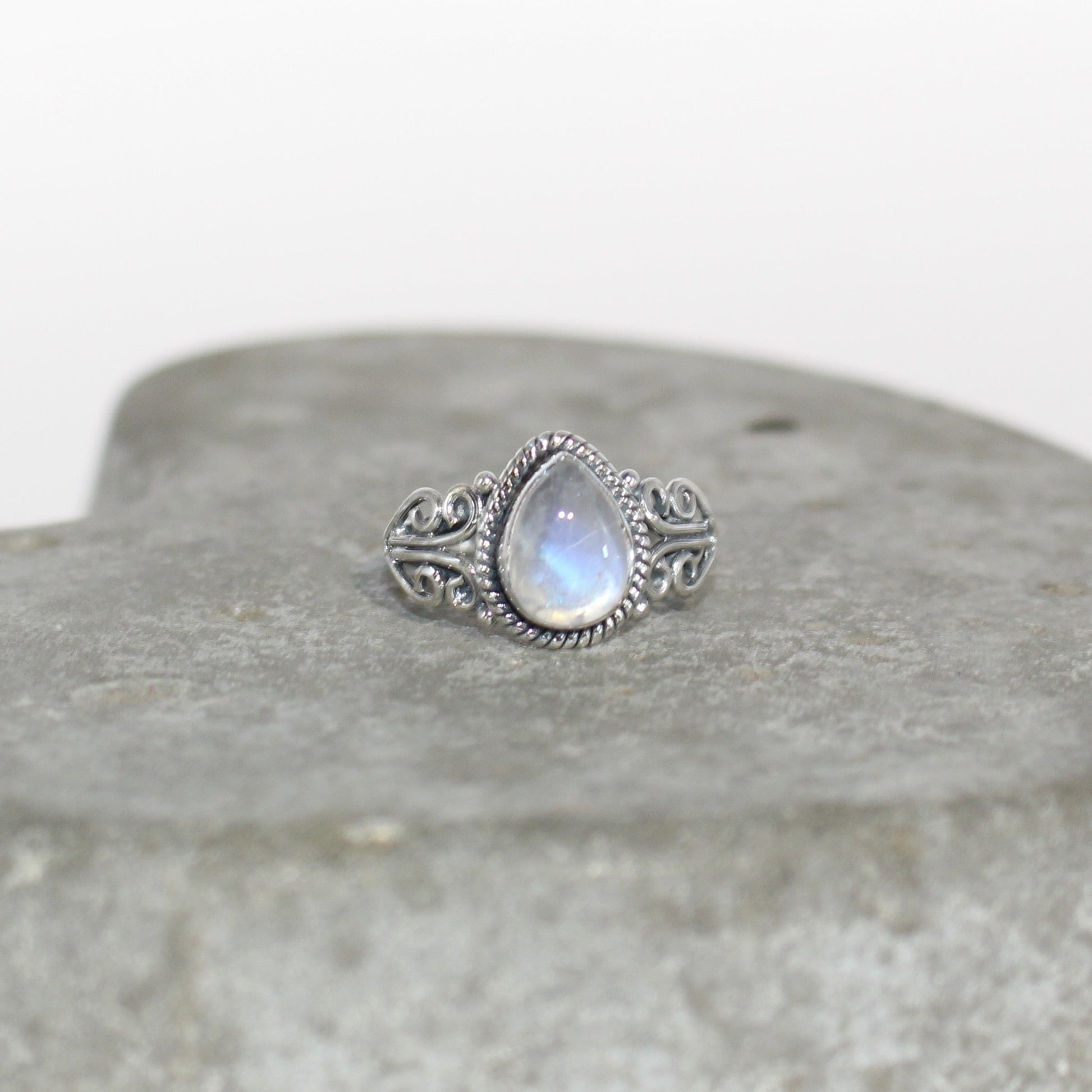Moonstone sterling silver ring stamped 925 and "Topsie" stamp